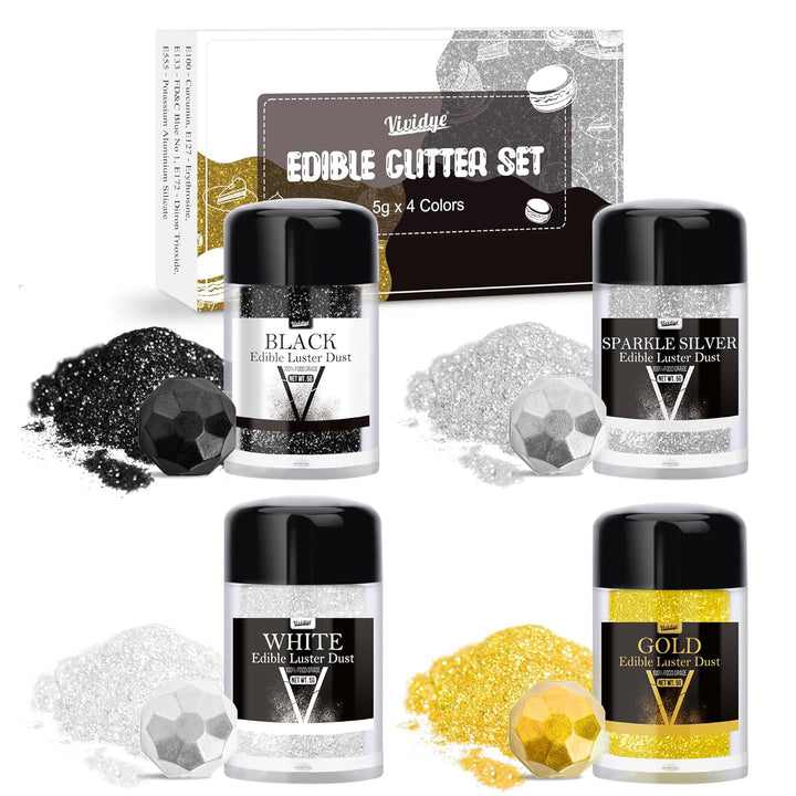 Il nostro scintillio commestibile della qualità degli alimenti è vegano e senza allergeni, non contiene glutine, noci o prodotti lattiero -caseari e, pertanto, è sicuro che tutti possono usare, indipendentemente dalle restrizioni dietetiche o dalle allergie alimentari. Certificato Kosher, Halal, HACCP e vegano. Non contiene zucchero o sapori, assicurandosi che non cambi il gusto o la consistenza del cibo.